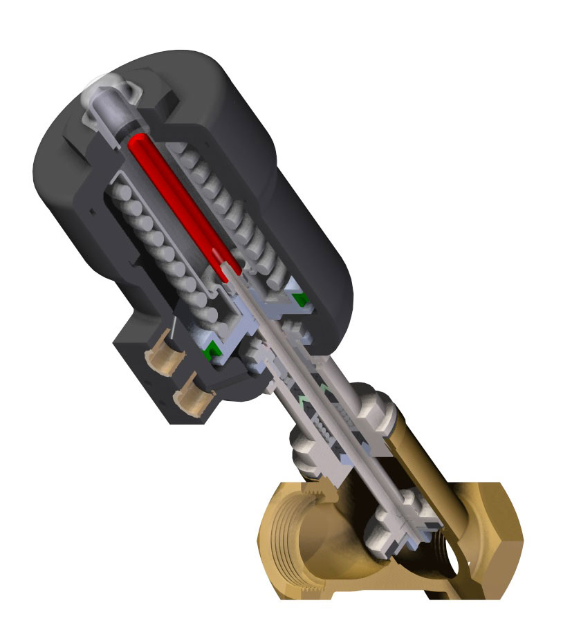Der Aktuator ist aus glasfaserverstärktem Nylon, widerstandsfähig und robust. Der Lufteinlassanschluss ist vom Typ NAMUR VDI/VDE 3845 zum direkten Anschluss des Vorsteuermagnetventils. Die Betätigungsfeder im Inneren ist vorgespannt; dies macht die Servosteuerung entfernbar und inspizierbar in Sicherheit. Das Stopfbüchsenpaket besteht aus V-Ringen aus PTFE/Graphit und Viton, für eine optimale Abdichtung sowohl bei hohen als auch bei niedrigen Temperaturen.