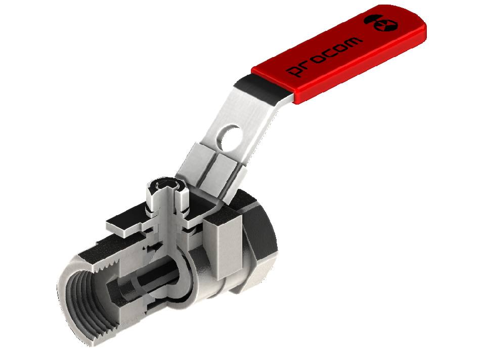 Die Absperrventile der Serie PCSFDV bestehen aus einem Gehäuse, das je nach Modell einteilig, zweiteilig oder dreiteilig sein kann, aus Edelstahl CF8M, einer besonders korrosionsbeständigen Legierung, und einer Kugel aus Stahl AISI 316. Die Abdichtung erfolgt durch diese Kugel, die durch Rotation die Dichtungen aus reinem PTFE zusammendrückt. Verschiedene Ventilkörperkonfigurationen sind verfügbar: